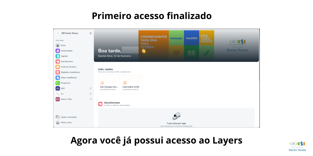 Durante a matrícula, você disponibilizou seu e-mail para nossa equipe. Nele você receberá um link de convite para realizar o primeiro acesso ao Layers